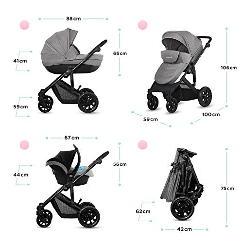 ✅FUNCTIONEEL: 3-in-1 kinderwagen – reiswieg met matras (tot 9 kg), wandelwagen inzet (van ca. 6 maanden tot 15 kg), MINK autostoel (vanaf de geboorte tot 13kg). Het zitje van de wandelwagen kan naar voren en naar achteren worden vastgezet